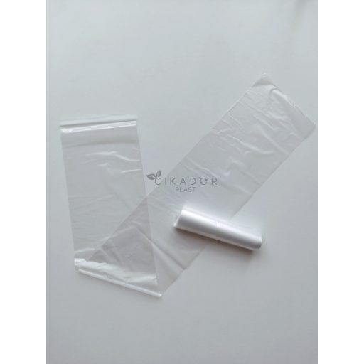 Hosszúkás tasak szalámi, kolbász vagy füstölt hús csomagolásához. Élelmiszeripari minőségű.